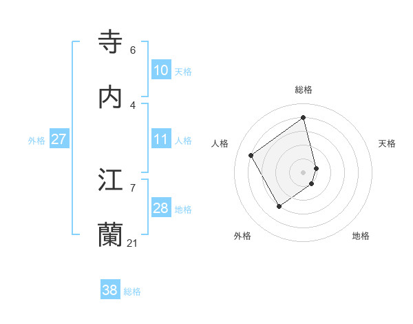 寺内 江蘭さんの総格は38画の4点!