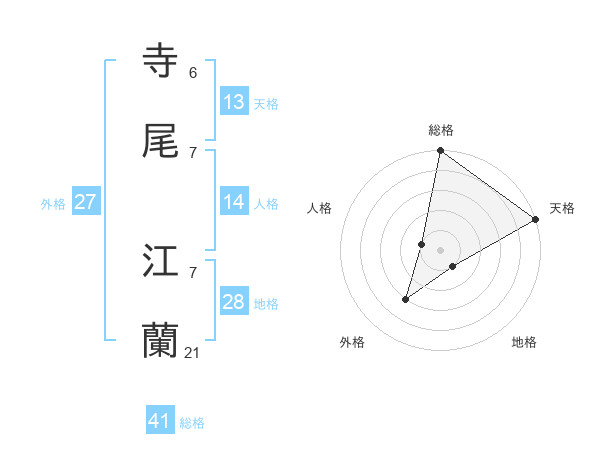 寺尾 江蘭さんの天格は13画の5点!
