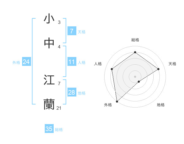 小中 江蘭さんの総格は35画の4点!
