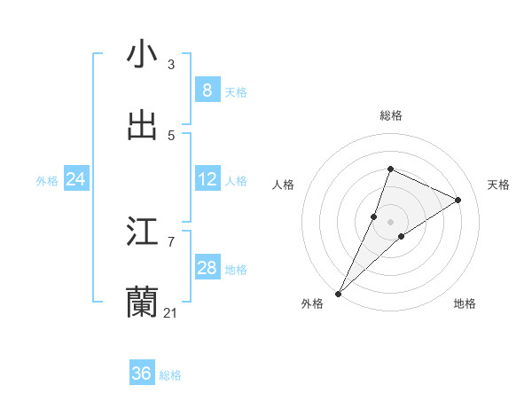 小出 江蘭さんを姓名の画数から五運を鑑定