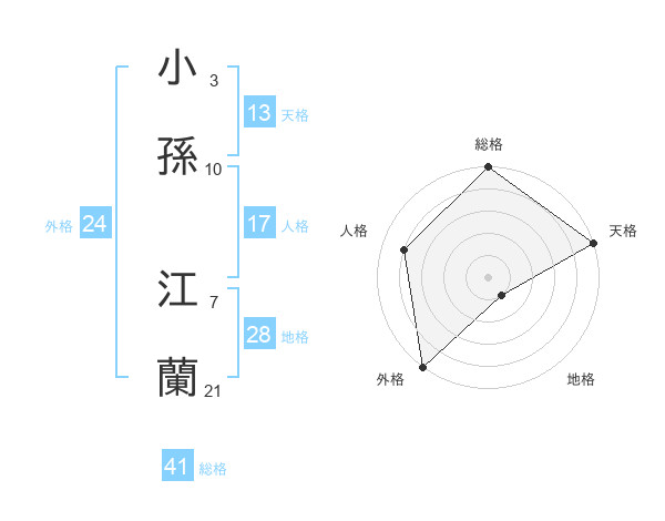小孫 江蘭さんの総格は41画の5点!