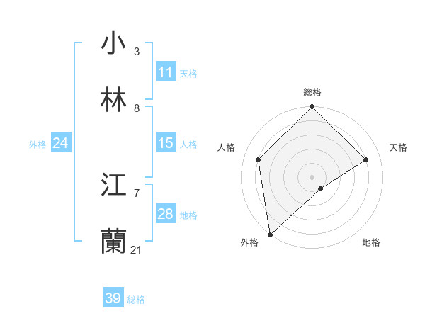 小林 江蘭さんを姓名の画数から五運を鑑定
