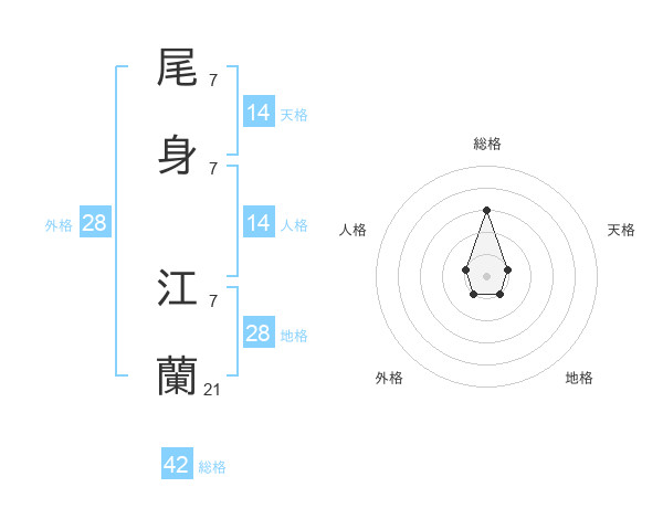 尾身 江蘭さんを姓名の画数から五運を鑑定