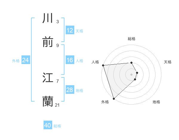 川前 江蘭さんの総格は40画の2点!