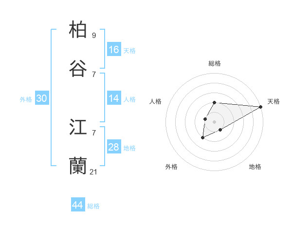 柏谷 江蘭さんを姓名の画数から五運を鑑定