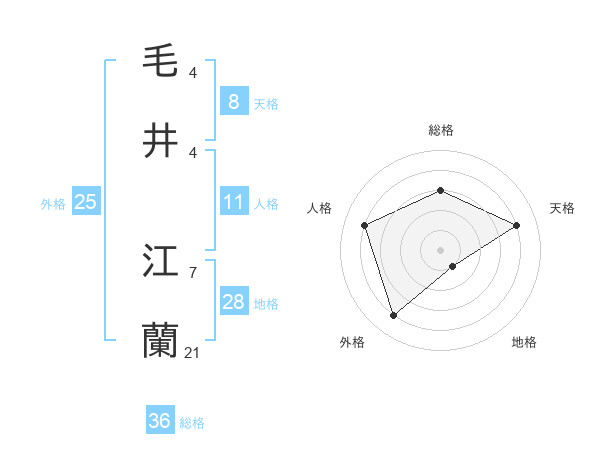 毛井 江蘭さんを姓名の画数から五運を鑑定