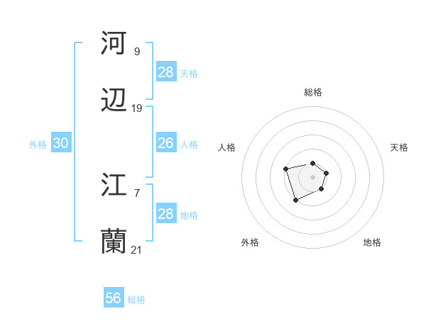 河辺 江蘭さんの天格は28画の1点!