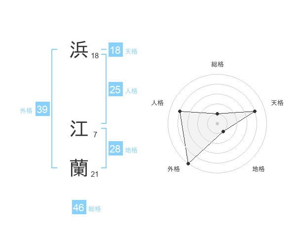 浜 江蘭さんの外格は39画の5点!
