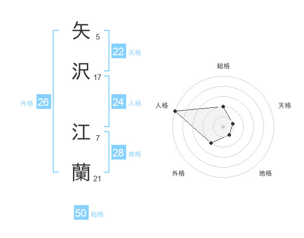 矢沢 江蘭さんを姓名の画数から五運を鑑定