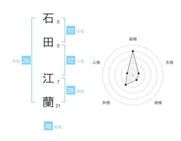 石田 江蘭さんの総格は38画の4点!