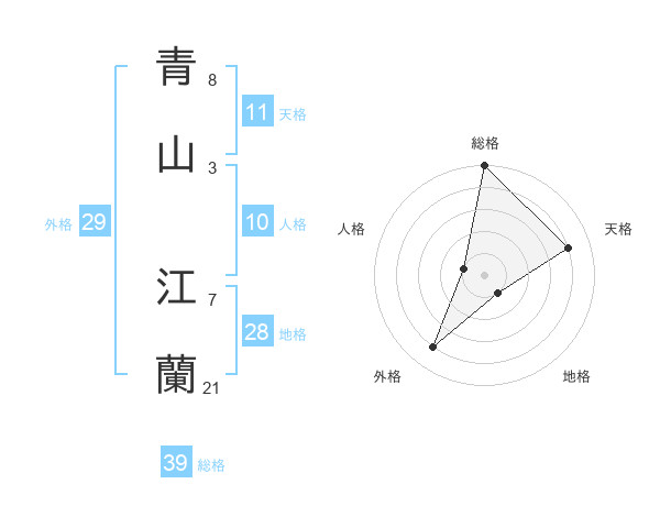 青山 江蘭さんを姓名の画数から五運を鑑定