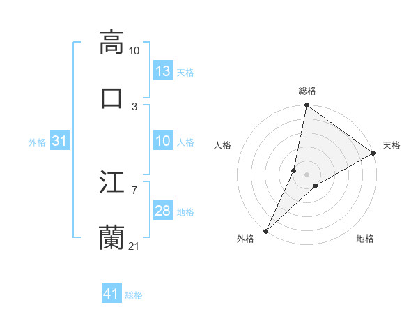高口 江蘭さんの総格は41画の5点!