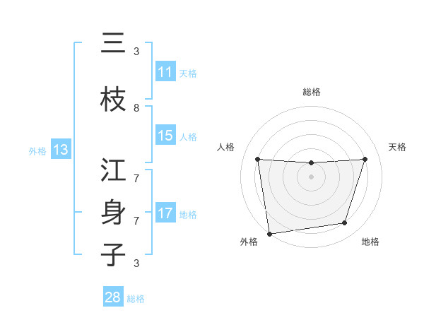 三枝 江身子さんを姓名の画数から五運を鑑定