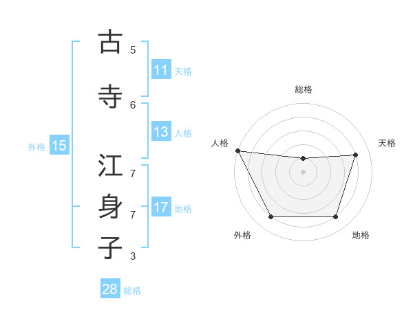古寺 江身子さんを姓名の画数から五運を鑑定