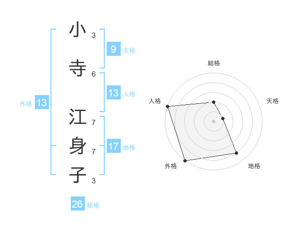 小寺 江身子さんを姓名の画数から五運を鑑定