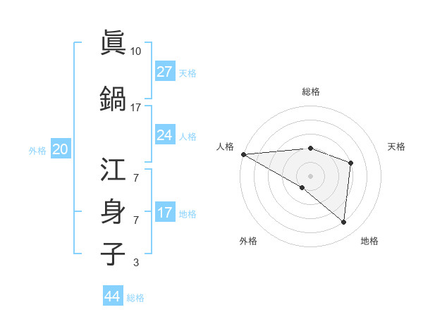 眞鍋 江身子さんを姓名の画数から五運を鑑定