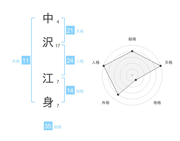 中沢 江身さんの天格は21画の5点!