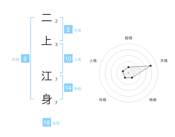 二上 江身さんの総格は19画の1点!