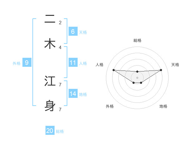 二木 江身さんの総格は20画の1点!