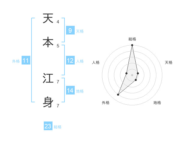 天本 江身さんの総格は23画の5点!