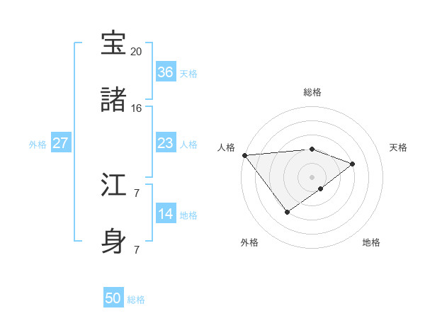 宝諸 江身さんの総格は50画の2点!