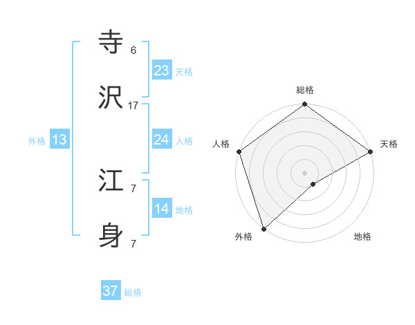 寺沢 江身さんを姓名の画数から五運を鑑定