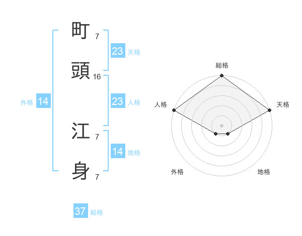 町頭 江身さんの天格は23画の5点!