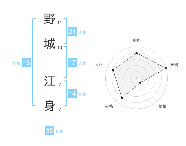 野城 江身さんの総格は35画の4点!