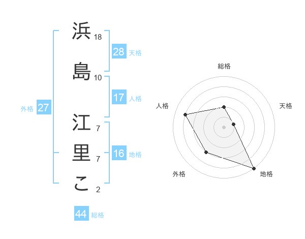浜島 江里こさんを姓名の画数から五運を鑑定