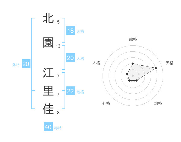 北園 江里佳さんを姓名の画数から五運を鑑定
