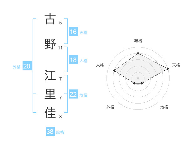 古野 江里佳さんの総格は38画の4点!