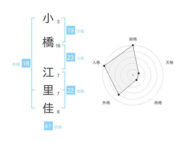 小橋 江里佳さんを姓名の画数から五運を鑑定