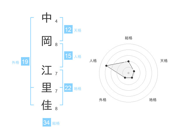 中岡 江里佳さんを姓名の画数から五運を鑑定