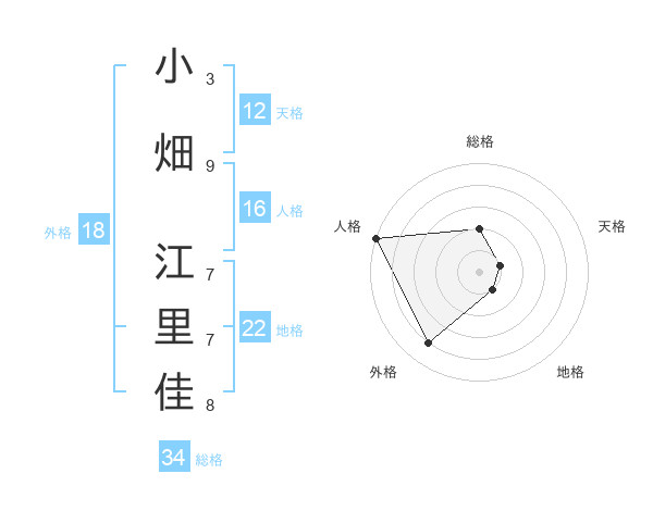 小畑 江里佳さんを姓名の画数から五運を鑑定