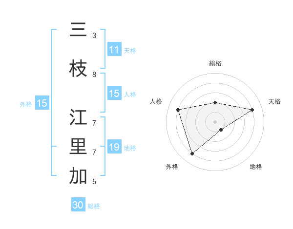 三枝 江里加さんを姓名の画数から五運を鑑定