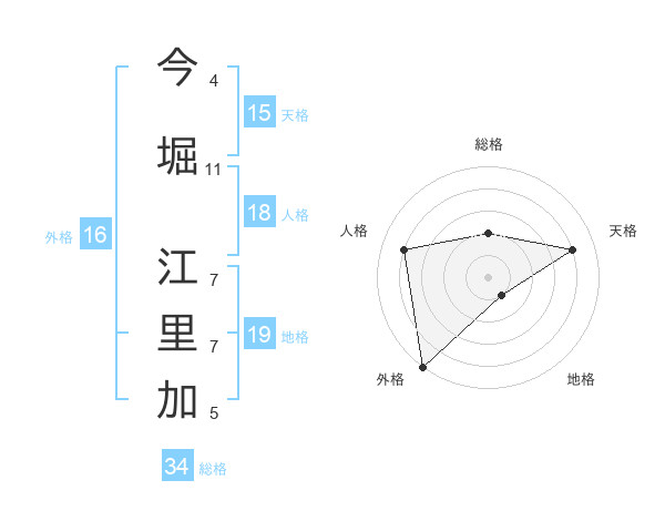 今堀 江里加さんを姓名の画数から五運を鑑定