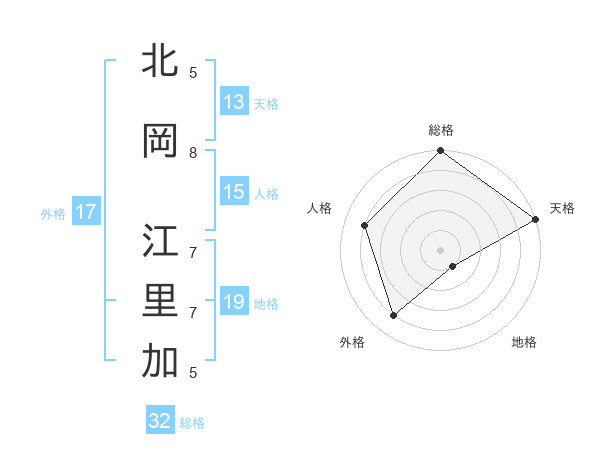 北岡 江里加さんを姓名の画数から五運を鑑定