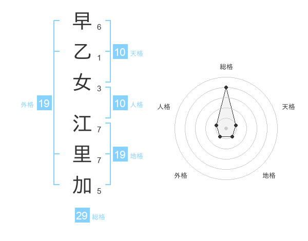 早乙女 江里加さんの総格は29画の4点!