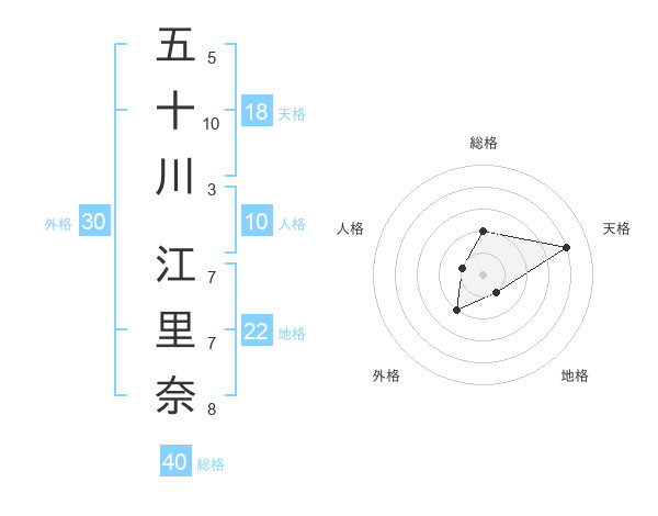 五十川 江里奈さんの総格は40画の2点!