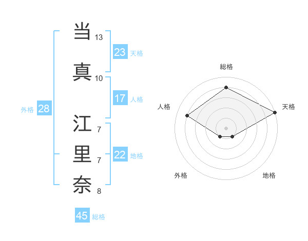 当真 江里奈さんを姓名の画数から五運を鑑定