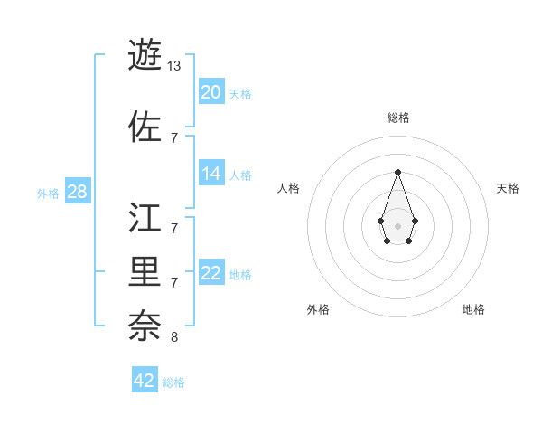 遊佐 江里奈さんの総格は42画の3点!