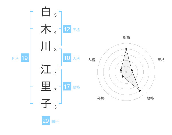 白木川 江里子さんを姓名の画数から五運を鑑定