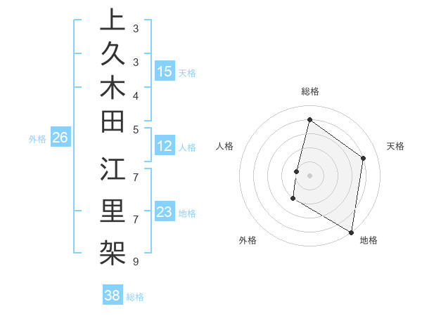 上久木田 江里架さんの総格は38画の4点!