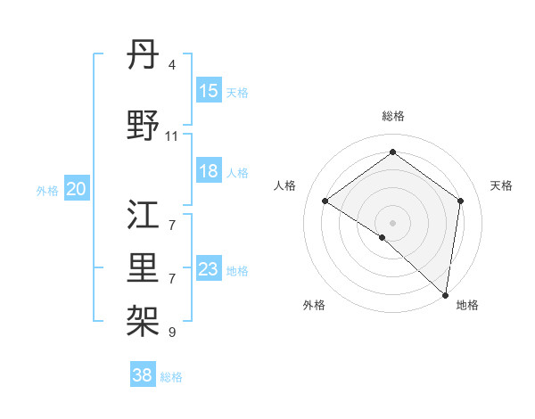 丹野 江里架さんを姓名の画数から五運を鑑定