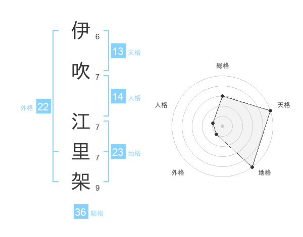 伊吹 江里架さんを姓名の画数から五運を鑑定