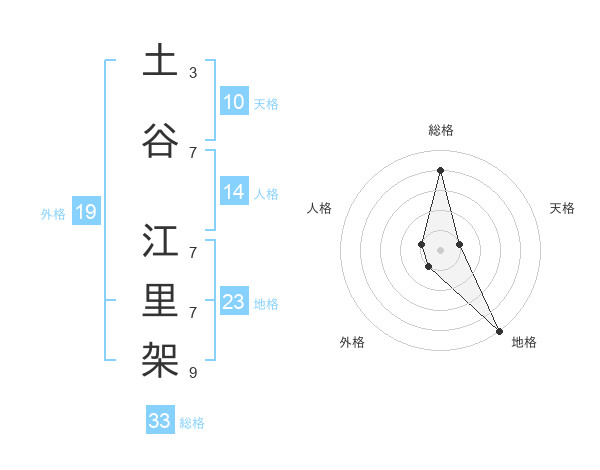 土谷 江里架さんを姓名の画数から五運を鑑定