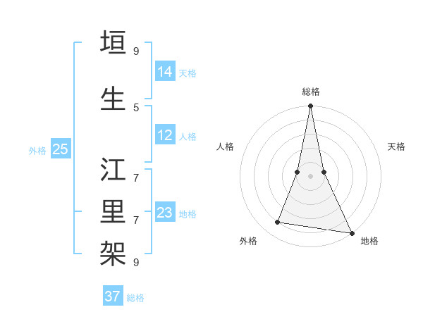 垣生 江里架さんを姓名の画数から五運を鑑定