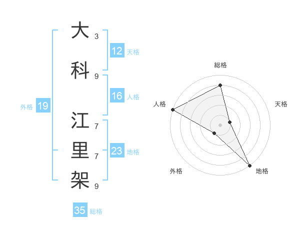 大科 江里架さんの地格は23画の5点!