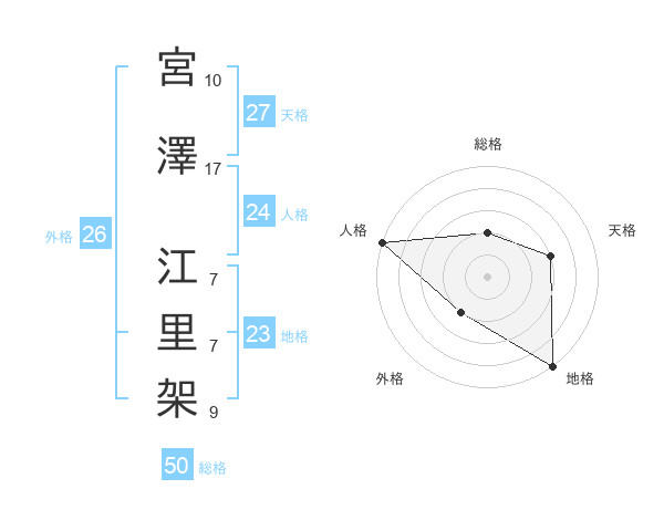 宮澤 江里架さんの総格は50画の2点!