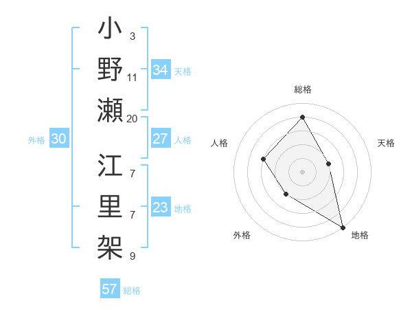 小野瀬 江里架さんを姓名の画数から五運を鑑定